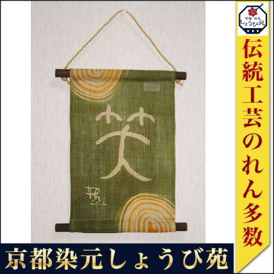 【タペストリー】”篆刻文字タペストリー笑(緑)”縁起の良い文字を飾って商売繁盛!運気アップ!【京都染本 タペストリー 文字 緑 壁掛け カーテン アジアン しょうび苑】