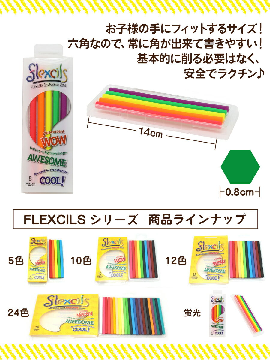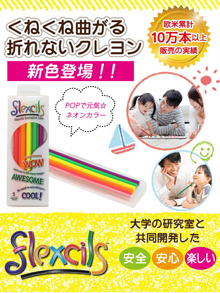 【 送料無料 】 テレビ紹介商品 曲がる 折れない 革新的 クレヨン flexcils フレキシルズ 蛍光5色入り なめても安心 手が汚れない安全 安心 楽しい 欧米の安全規格をクリア 色鉛筆 クレパス クーピー 3歳 4歳 5歳 6歳 7歳 8歳 9歳 10歳の子供に最適