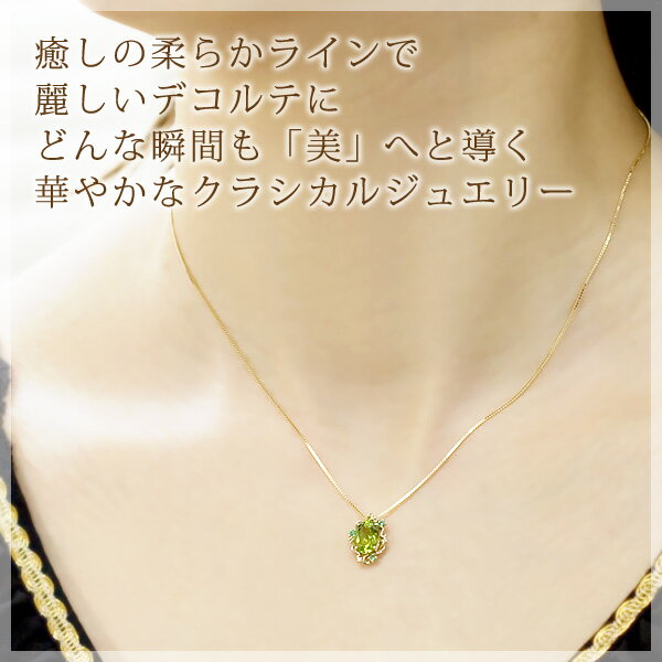 ▼店舗管理用ワード【コンビニ受取対応商品】[tag:ペリドット][tag:エメラルド][tag:1月誕生石][tag:8月誕生石][tag:イエローゴールド][tag:ネックレス][tag:あす楽対応]とっても存在感溢れる6×8mmのオーバルカットがグラマラスで艶やかな輝き。