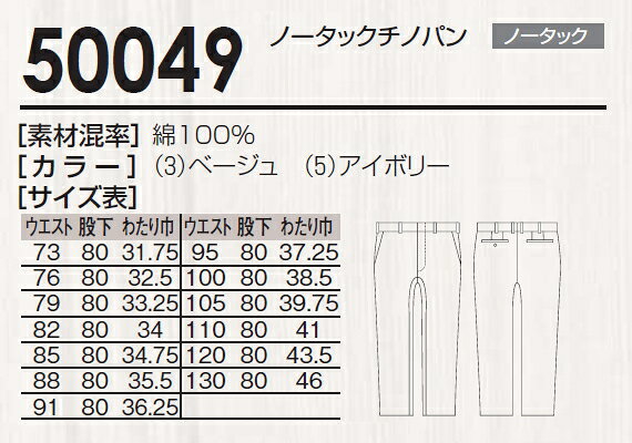 ユニフォーム 作業着 パンツ ズボン ノータックチノパン 50049(105〜110cm) 桑和(SOWA) お取寄せ