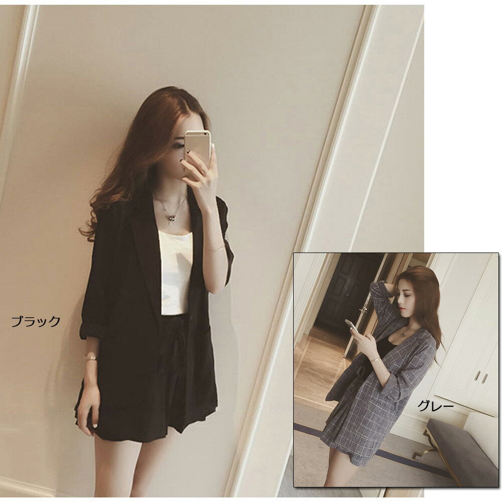 上下セットアップ レディース テーラードジャケット チェック柄 ハーフパンツ