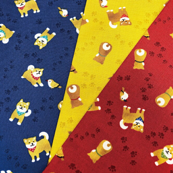 【シーチング生地】柴犬のお散歩【しば 犬 イヌ 足あと 鳥 トリ 和調 和風 伝統和柄 お正月 かわいい インテリア 新年 のれん 】